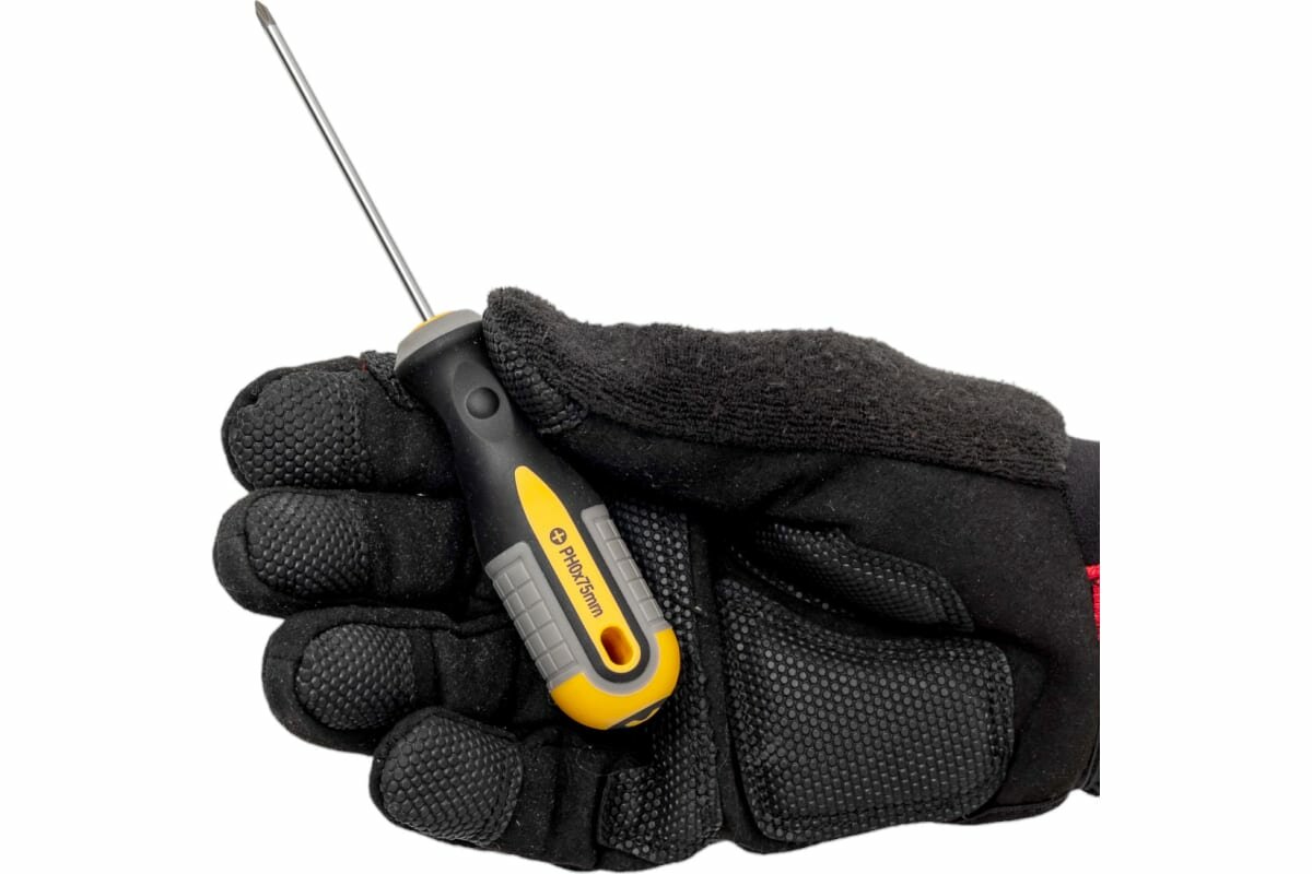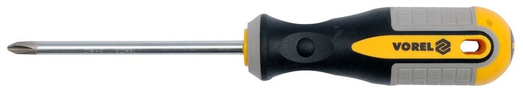 Крестовая отвёртка "VOREL" РН 0x75мм изготовлена из хром-ванадиевой стали CrV. Наконечник отвёртки изготовлен из специальных износостойких и прочных сплавов, а также намагничен, что обеспечивает надежное сцепление с головкой винта.Эргономичная рукоятка выполнена из двух современных технологичных материалов, которые предотвращают проскальзывание руки, что снижает усталость оператора и обеспечивает более эффективную работу. Отверстие в рукоятке позволяет подвешивать отвертку
