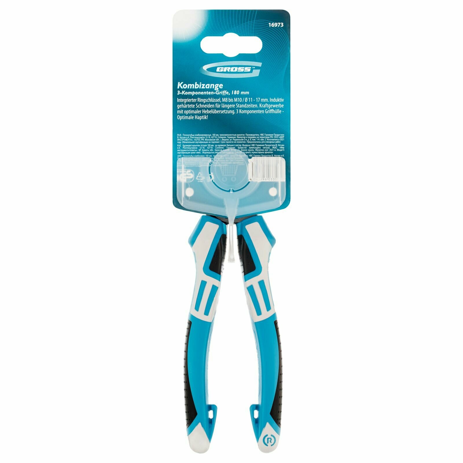 - Плоскогубцы комбинированные 180 мм, трехкомпонентные рукоятки, Gross, 16973