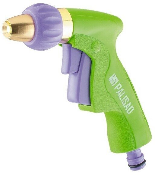 | Прочие особенности и свойства | Пистолет-распылитель со штуцерной посадкой и удобным курком, расположенным сзади. Оснащен регулируемой форсункой, что обеспечивает три режима полива: жесткую струю, распыление типа «туман», конусное распыление. Имеет фиксатор курка для непрерывной работы., Предназначен для полива на дачных участках, в садах, парках и скверах, а также для очистки. Совместим со всеми элементами системы полива Palisad и Palisad Luxe., Корпус и курок пистолета изготовлены из прочного АБС-пластика, рукоятка залита резиной, что обеспечивает максимальный комфорт при работе с инструментом. |