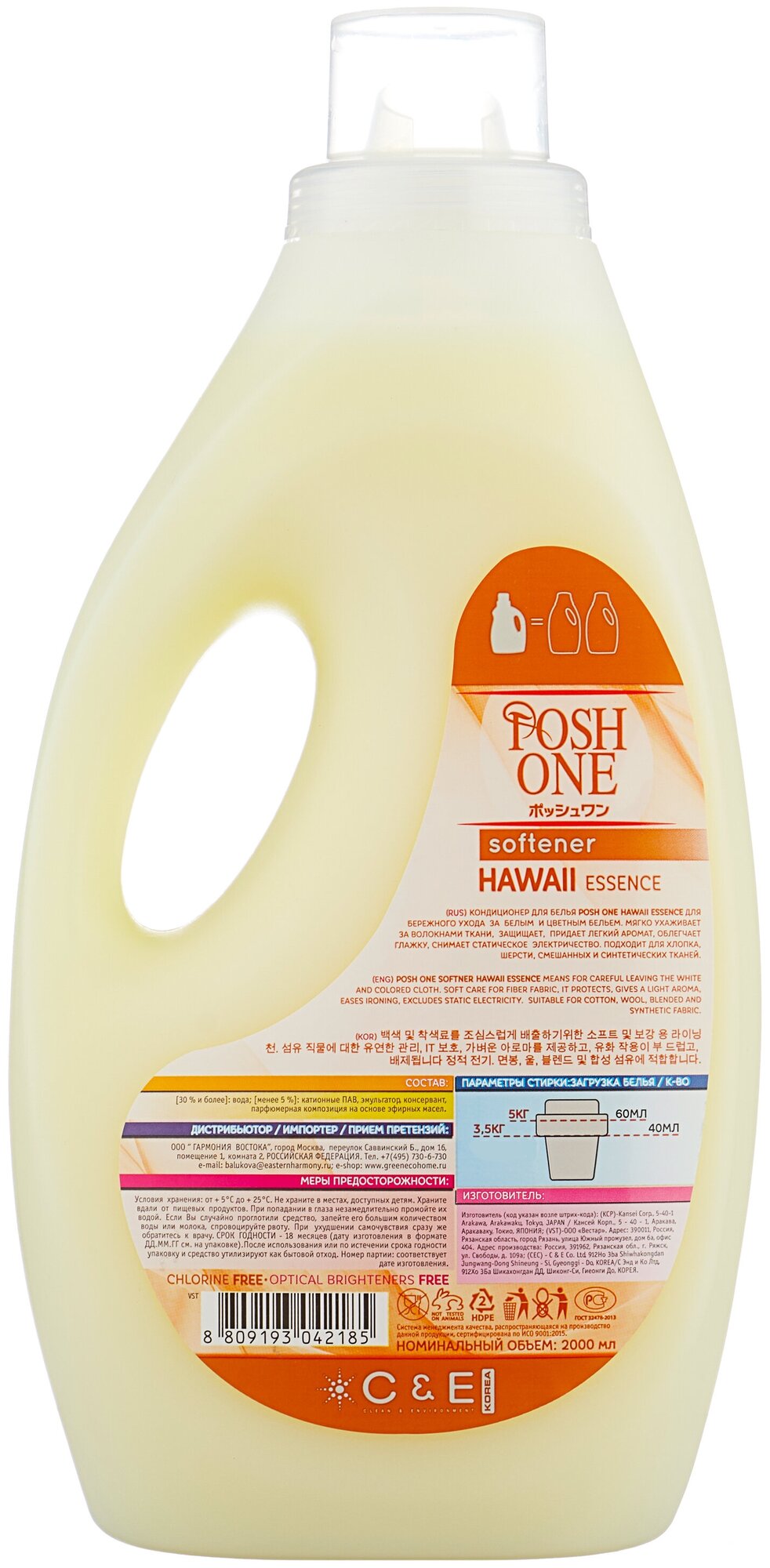 Кондиционер для белья c аромакапсулами и антистатиком Posh One Гавайи обеспечивает бережный уход за белым и цветным бельем. Благодаря тому, что кондиционер не содержит эко-токсичных компонентов, его можно использовать для стирки детского белья. К преимуществам можно отнести и то, что кондиционер снимает статическое электричество.