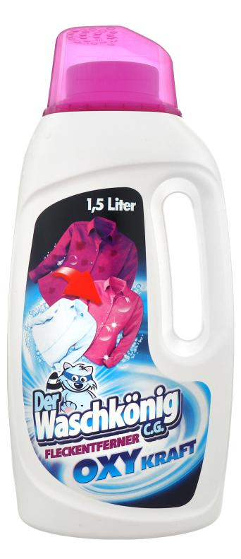 Пятновыводитель Der Waschkonig Oxy Kraft 1,5 л. Активная формула средства от пятен нового поколения гарантирует выведение даже самых стойких и въедливых загрязнений. Средство можно использовать и как добавку к порошку, и отдельно - для выведения особо сложных, засохших пятен. Эффективен даже при низких температурах. Можно использовать пятновыводитель для всех типов и цветов тканей - он не содержит в своем составе хлор, поэтому является безопасным для волокон.
