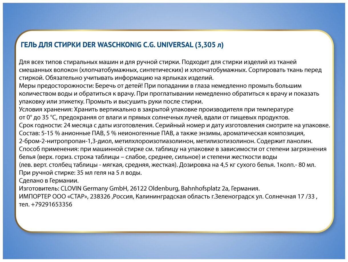 Средства для стирки белья Der Waschkonig C.G.