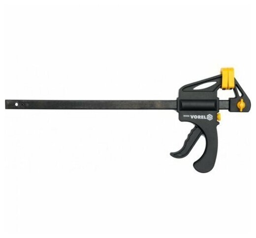 Струбцина VOREL быстрозажимная 300 мм. Позволяет точное управление одной рукой. Эффективно действующий механизм крепления и вращения обеспечивает параллельную работу челюстей. Особенностью этой модели является дополнительная функция работы. Заправка струбцины, длится несколько секунд, и мы можем работать например, при монтаже косяков.