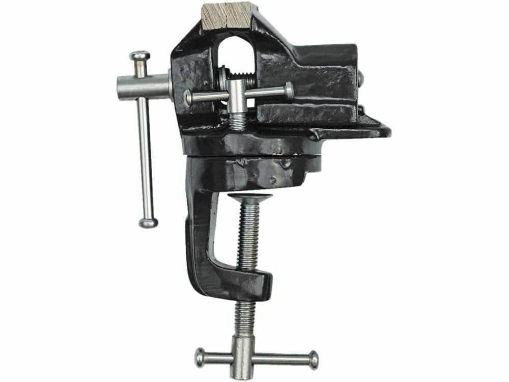 Тиски VOREL 75 мм настольные поворотные крепко фиксируют обрабатываемые заготовки. Данное приспособление активно используется в слесарном деле, а также умельцами в частных мастерских. Струбцинный фиксатор обеспечивает быструю и легкую установку тисков этой модели на рабочий стол или верстак. Конструкция приспособления оснащена винтовыми зажимами с рукоятками, перемещающимися относительно центра для удобства эксплуатации.