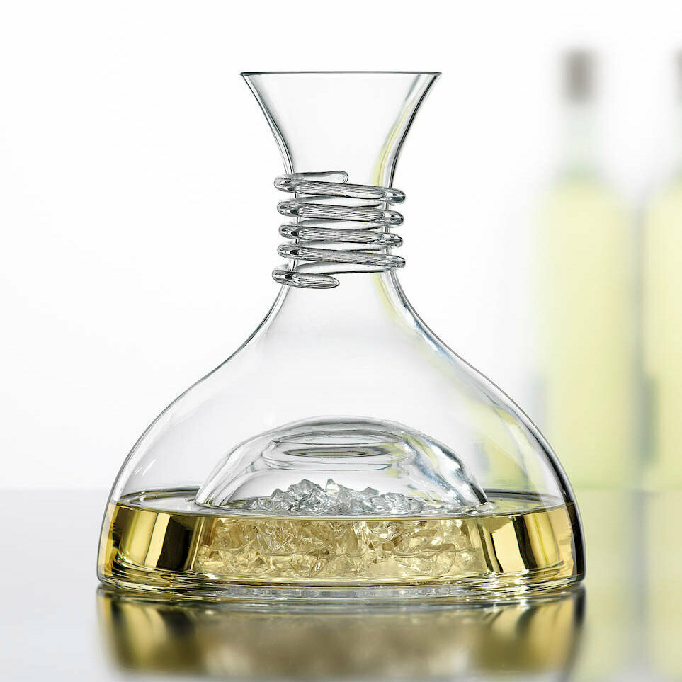 Декантер для вина Red & White от всемирно известного производителя хрустальной посуды с 500-летней историей компании Spiegelau (Шпигелау) отличается невероятно стильным и современным дизайном. Универсальная форма сосуда дополнена оригинальным элементом в виде винтовой спирали, закручивающейся вокруг горлышка декантера, что придает некой экстравагантности данной модели. Дополнительная чаша в центре несет не только эстетическую, но и практическую функцию. Она является отдельным резервуаром и может использоваться для наполнения льдом. Модель идеально подходит для декантации разных видов белых и красных вин. Широкое основание декантера позволяет быстро насытить вино кислородом и смягчить присутствие излишних танинов. Декантер выполнен из бессвинцового хрустального стекла, благодаря чему изделие приобретает легкость, удивительную прочность, кристальную чистоту, блеск и мелодичное звучание. Декантер можно мыть в посудомоечной машине.