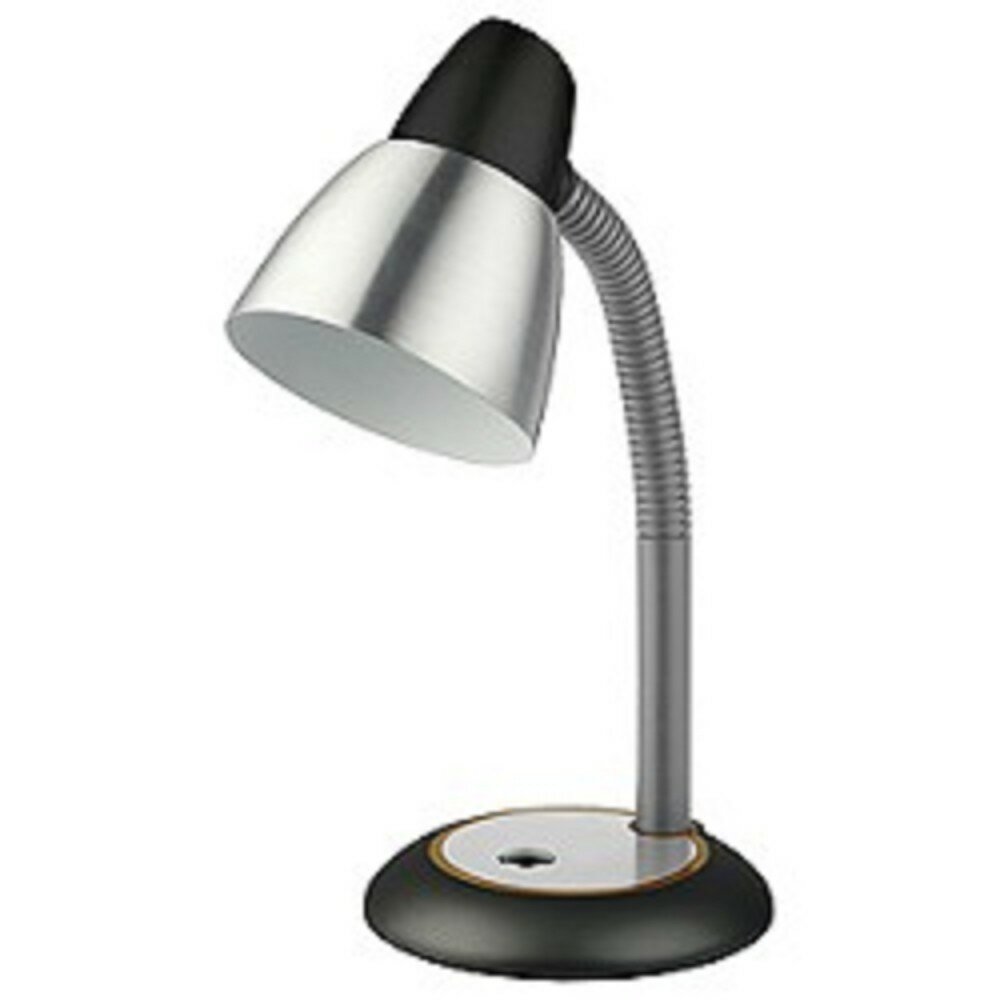 Настольный светильник Эра N-115 оснащён устойчивым металлическим основанием, металлическим плафоном большого диаметра и гибкой ножкой, позволяющей наклонять и поворачивать плафон в любом направлении.
