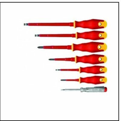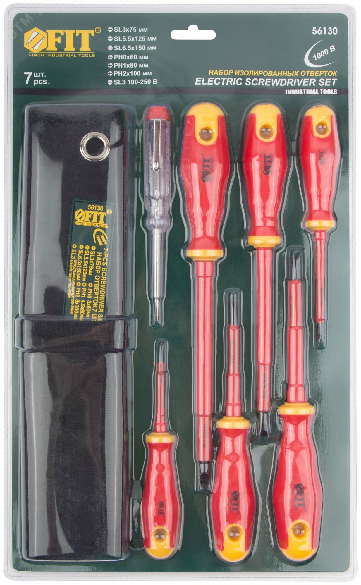 Набор изолированных отверток FIT состоит из семи предметов, предназначенных для демонтажа болтов и шурупов, находящихся под напряжением до 1000 В. В набор входит индикаторная отвертка, для проверки наличия напряжения. Для удобства хранения все предметы поставляются в специальном нейлоновом конверте.