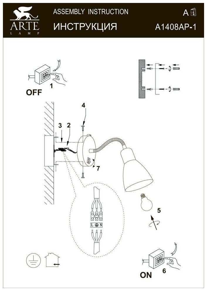 Настенный светильник Artelamp Dorm A1408AP-1WH.