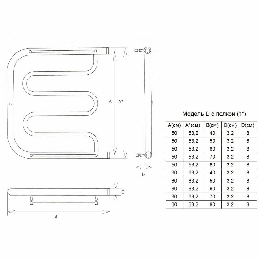 | Форма полотенцесушителя | фокстрот(Е-образный) |