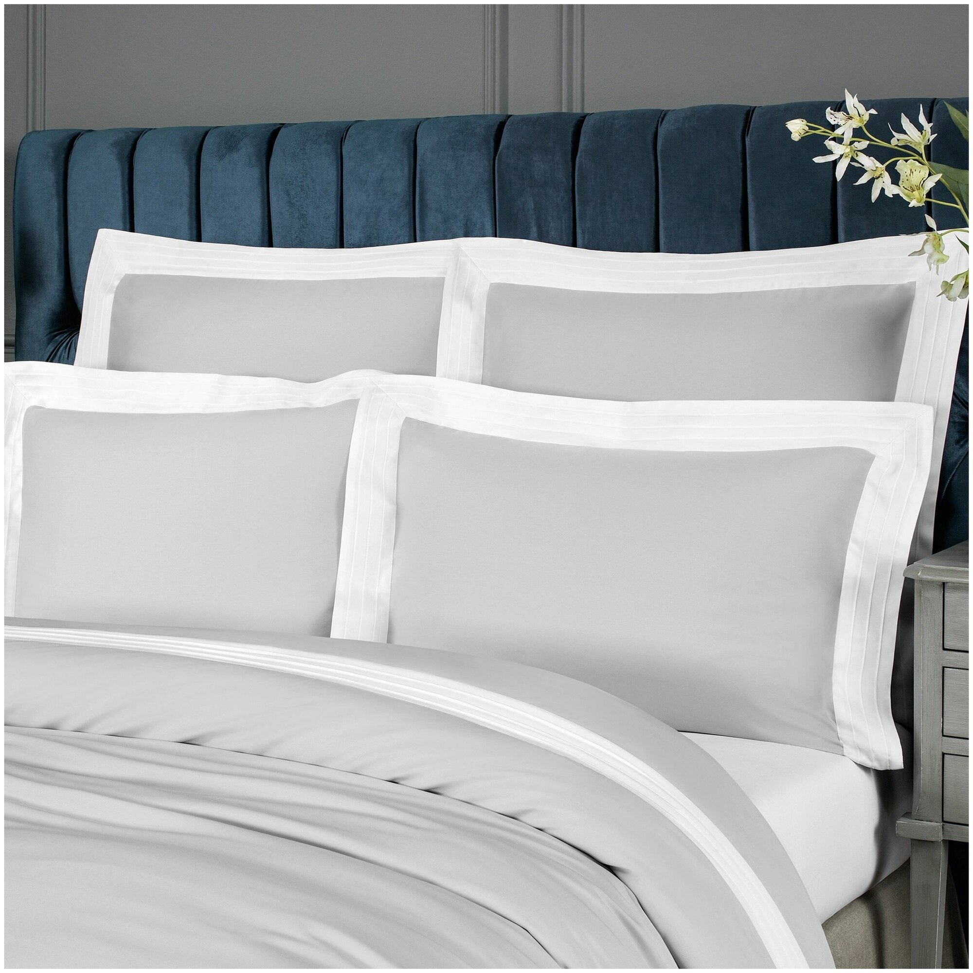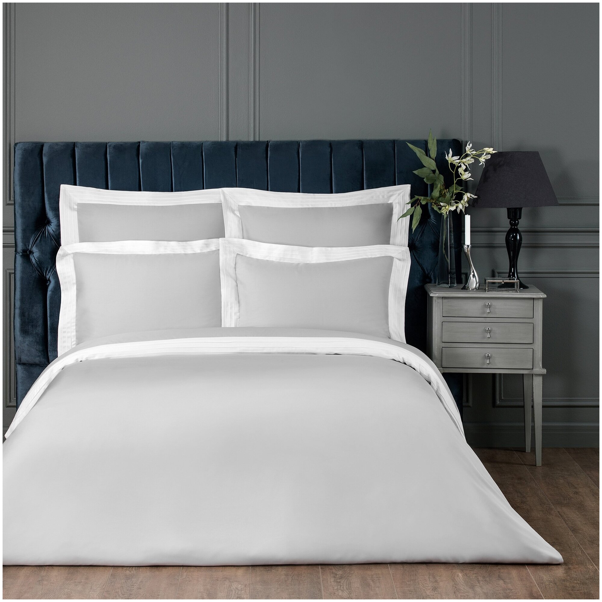 Жемчужно-серый в сочетании с белым комплект Togas "Эдем" как нельзя лучше соответствует изысканной европейской классике в интерьерном дизайне. Однотонное белье пастельных оттенков будет идеально смотреться как в традиционном, так и в современном интерьере. Бамбуковое волокно сочетает лучшие качества льна, шелка и хлопка, это очень прочная, гигроскопичная, воздухопроницаемая и гипоаллергенная ткань. Невероятно мягкий, гладкий и шелковистый материал напоминает прикосновение к лепесткам цветка и идеально подходит для людей с чувствительной кожей.