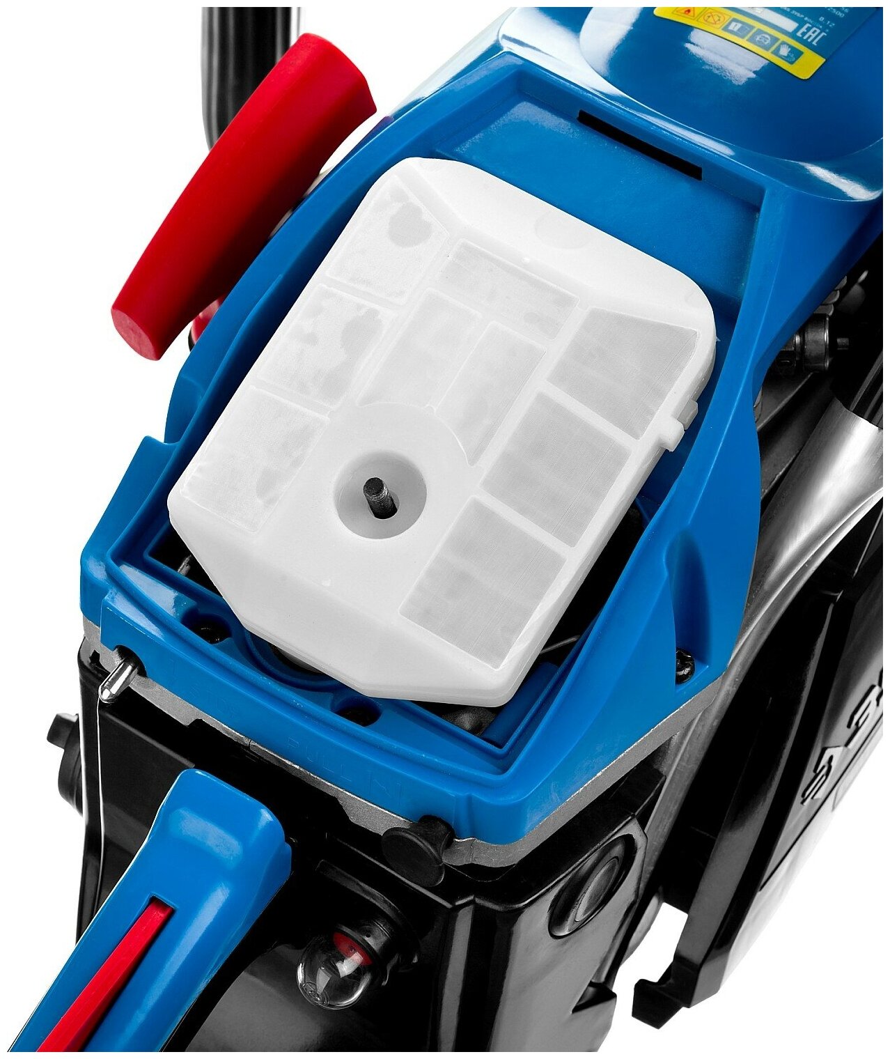 | Особенности | - Профессиональная пила для наиболее тяжелых работ, созданная для продолжительной работы; - Высокая надежность двигателя обеспечивается двумя компрессионными кольцами и хромированием цилиндра; - Японский карбюратор Walbro с праймером (принудительной подка |