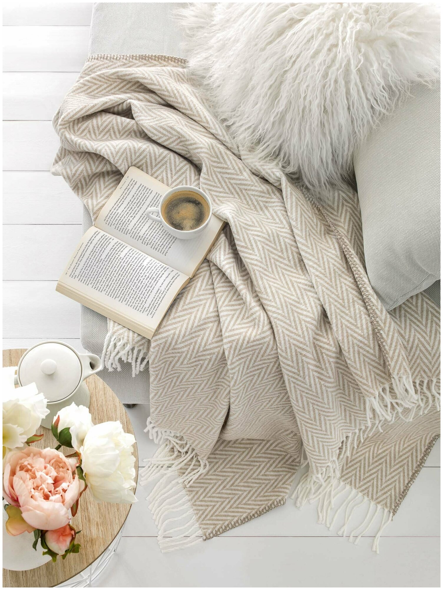 Классический рисунок - французская елочка, пышная бахрома, которая украшает края изделия, и гармоничное сочетание приятных природных цветов - это красивый плед Togas Сомерсет . Модель, выполненная в пастельных оттенках, бежевом и экрю, смотрится очень уютно. В ткани этой модели мягкая вискоза сочетается с экологичным хлопком. Плед комфортен и приятен на ощупь, это достаточно легкая, нежаркая модель.