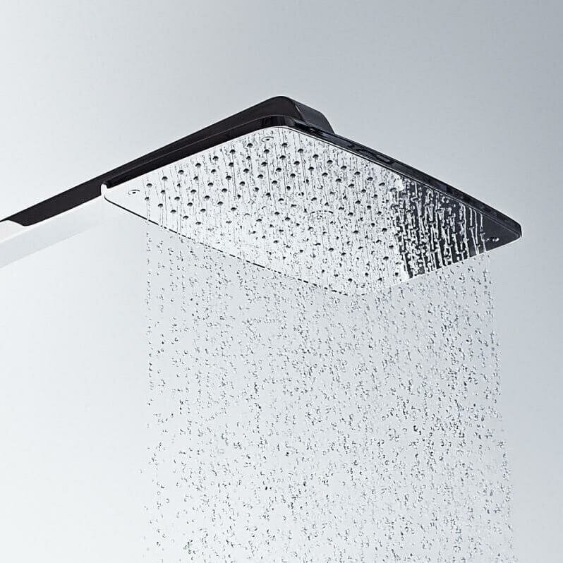 Душевая система Hansgrohe Raindance Select 27113400 предназначена для применения в современных ванных комнатах. Верхняя лейка размером 36х19 см обеспечивает владельца мощным тропическим дождиком. Ручной душ функционирует в нескольких режимах. Есть излив для наполнения ванны.