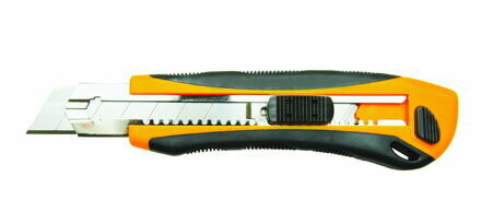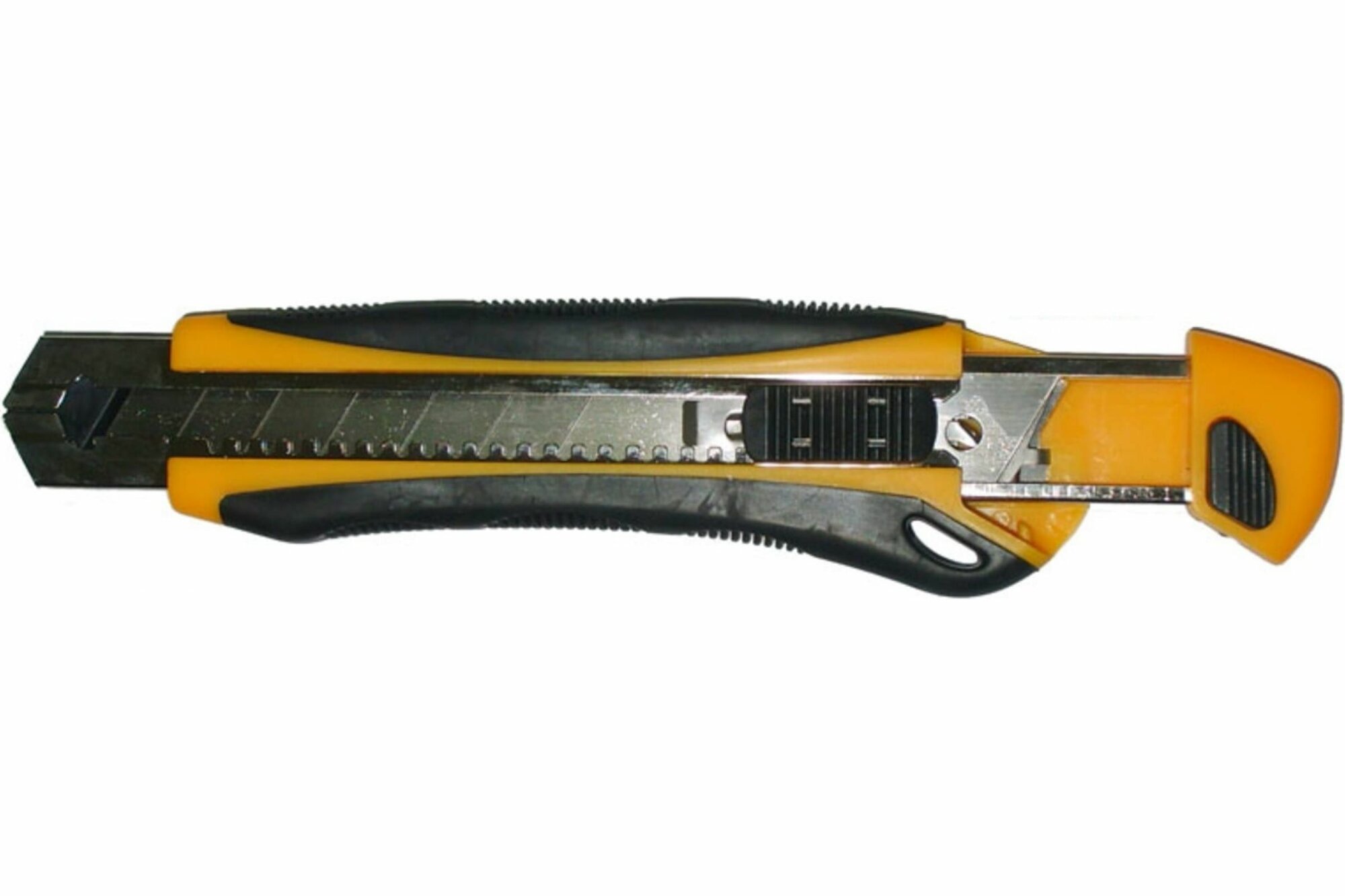 Лезвие с отламывающимися сегментами изготовлено из высококачественной стали. Корпус изготовлен из ударопрочного пластика, прорезиненный, выдерживает большие нагрузки. Нож предназначен для проведения всех видов ремонтных работ.
