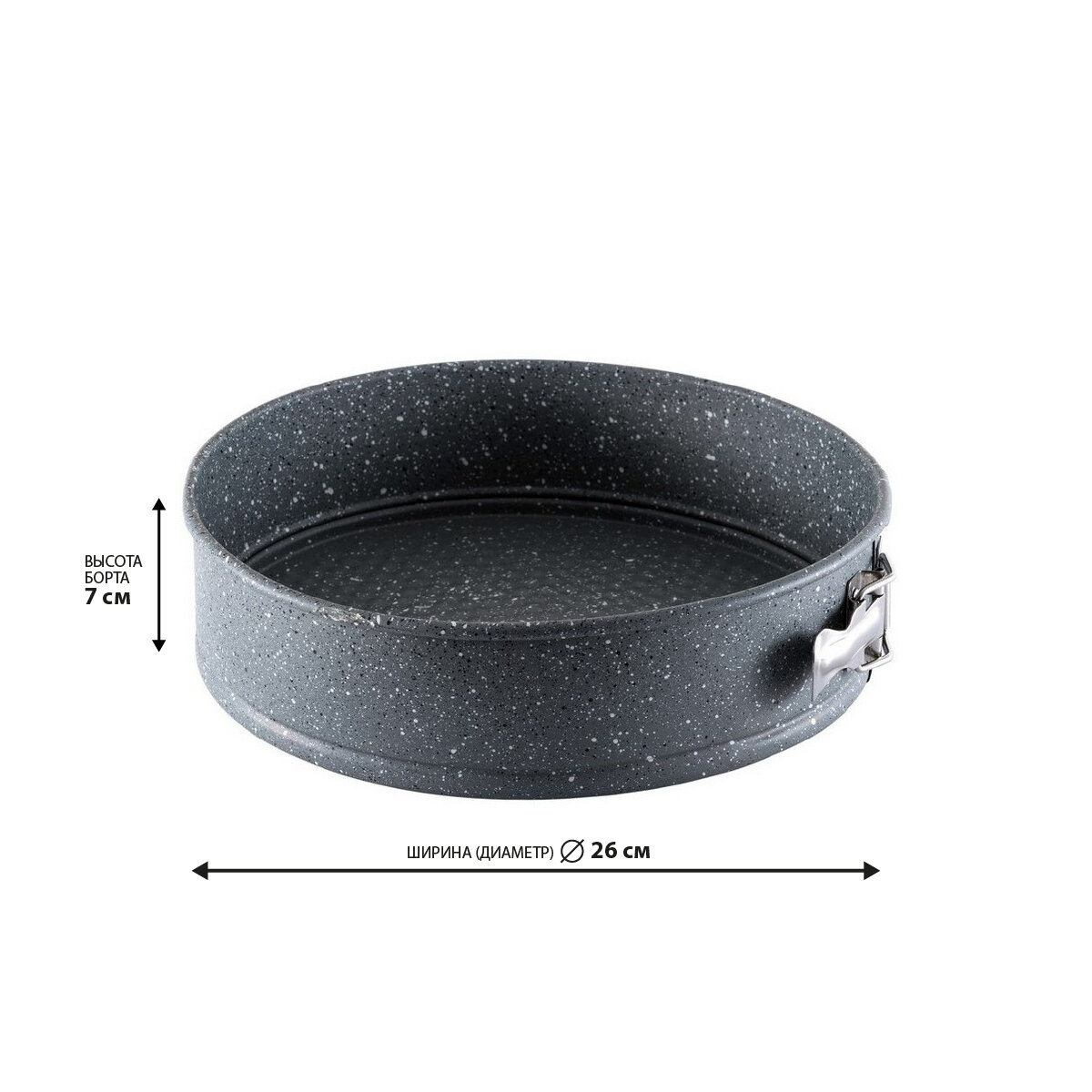 Круглая раздвижная форма для выпечки из коллекции Marble с габаритами 26×26×7см. Подобная диагональ позволит выпекать коржи больших размеров, а высота бортиков — получать пышные торты. Детали плотно прилегают друг к другу, поэтому жидкое тесто не вытекает в процессе готовки. В собранном виде изделие ничем не отличается от привычных монолитных емкостей для запекания. Подходит для выпечки и создания заливных блюд. Благодаря наличию съемного дна позволяя с легкостью вынуть содержимое. Раздвигающиеся бортики помогают сохранить края коржей невредимыми. Посуда изготовлена из углеродистой стали, не боящейся механических повреждений и повышенных температур. Поверхность дна рифленая, что содействует легкому отделению от коржей. Внутри расположено мраморное антипригарное покрытие, не требующее тщательного ухода. Аксессуар так же очищается в посудомоечной машине.Внимание: во избежание порчи товара, после использования, изделие рекомендуется насухо протереть.