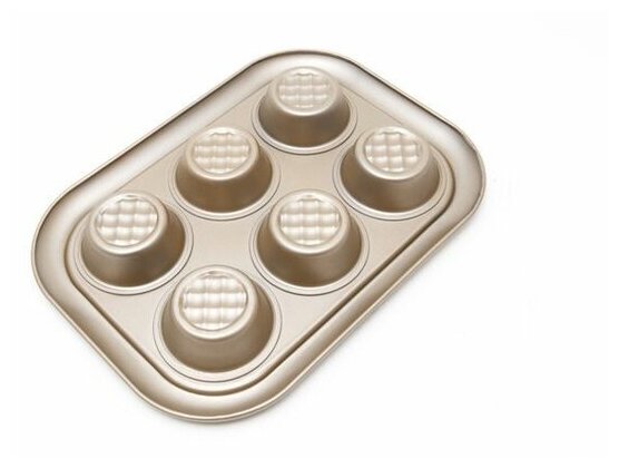Форма для выпечки кексов merigold 29х21х3,5см с 6 отделениями, с рельефным дном, с антипригарным покрытием whitford. Материал: углеродистая сталь.