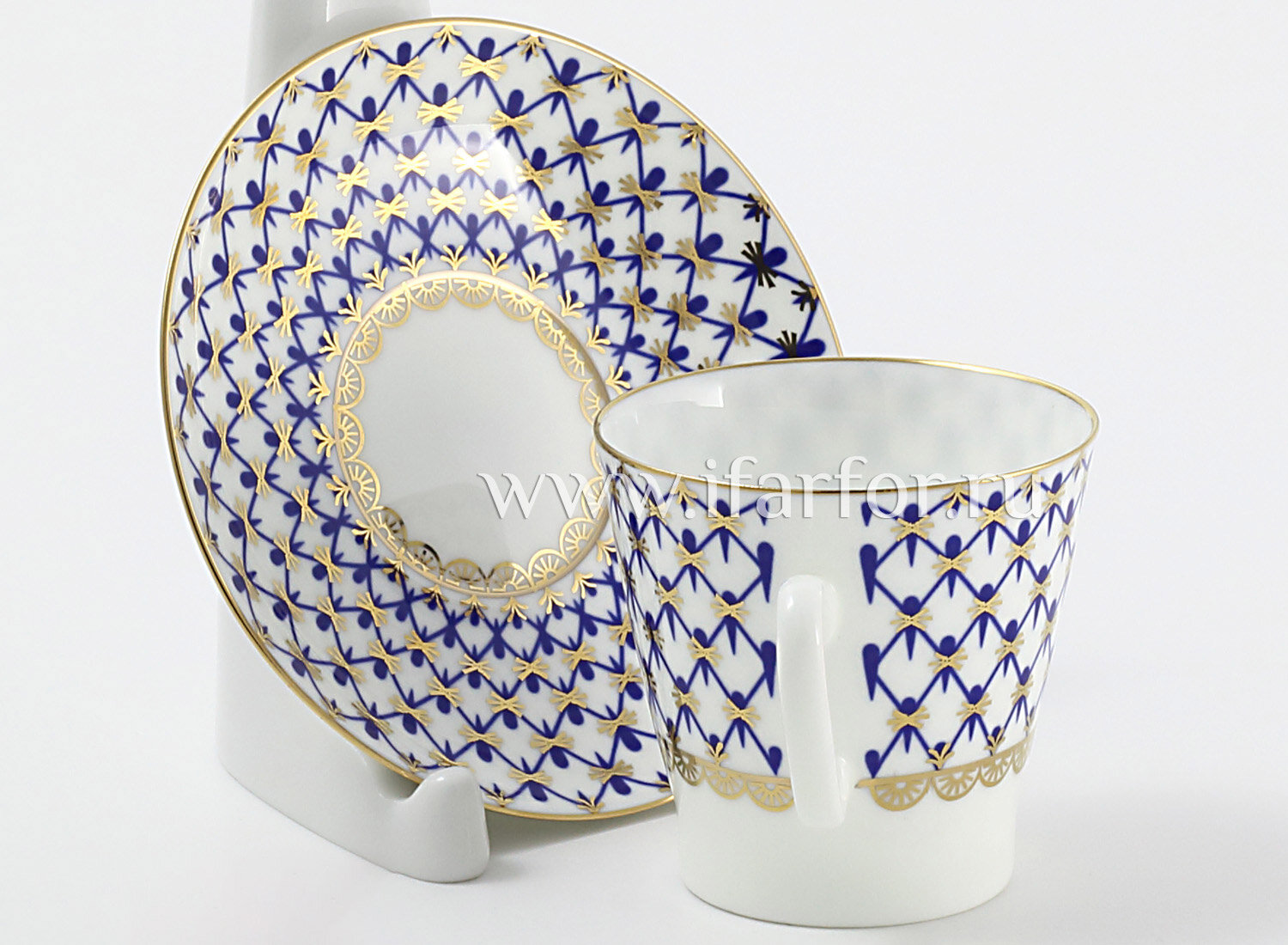 Чашка с блюдцем Кобальтовая сетка Черный кофе Лфз