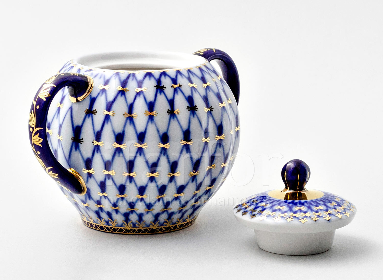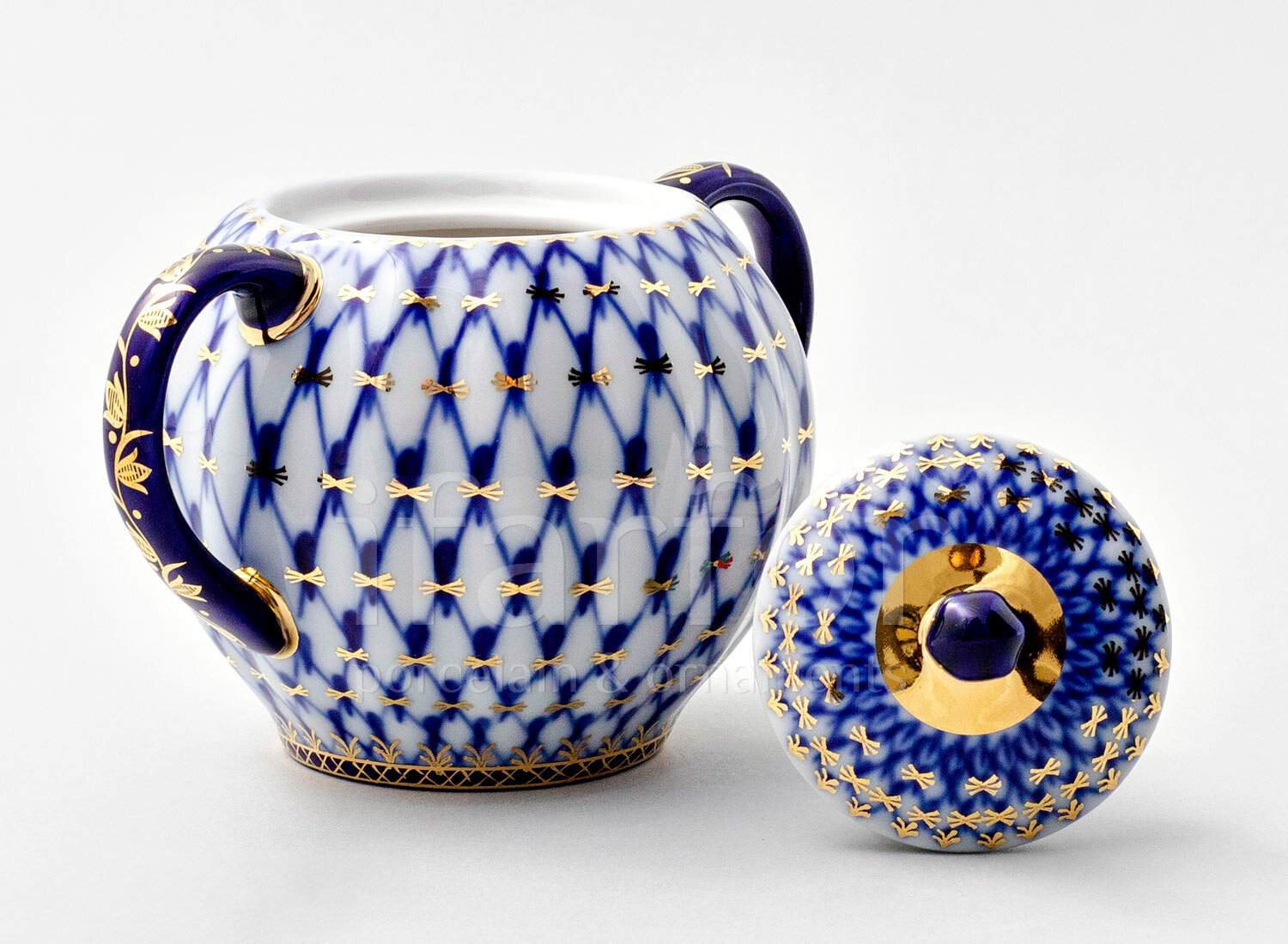 Сахарница Императорский Фарфоровый Завод Сахарница форма Тюльпан рисунок Кобальтовая сетка арт. 80.00234.00.1 Лфз