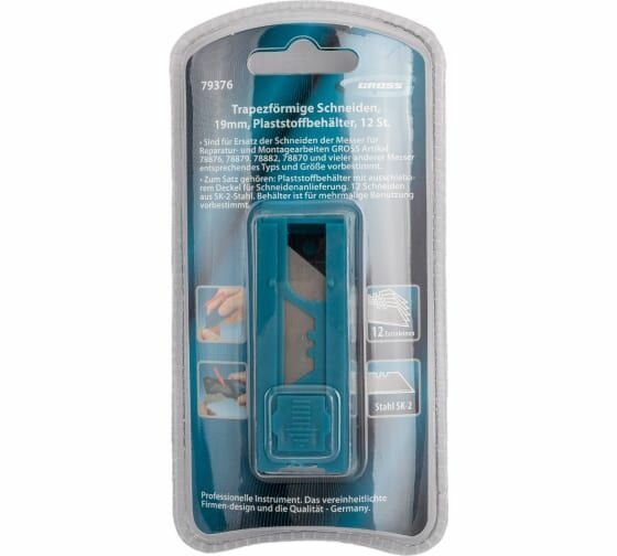 Трапециевидные лезвия GROSS 79376 19мм трапециевидные, пластиковый кейс