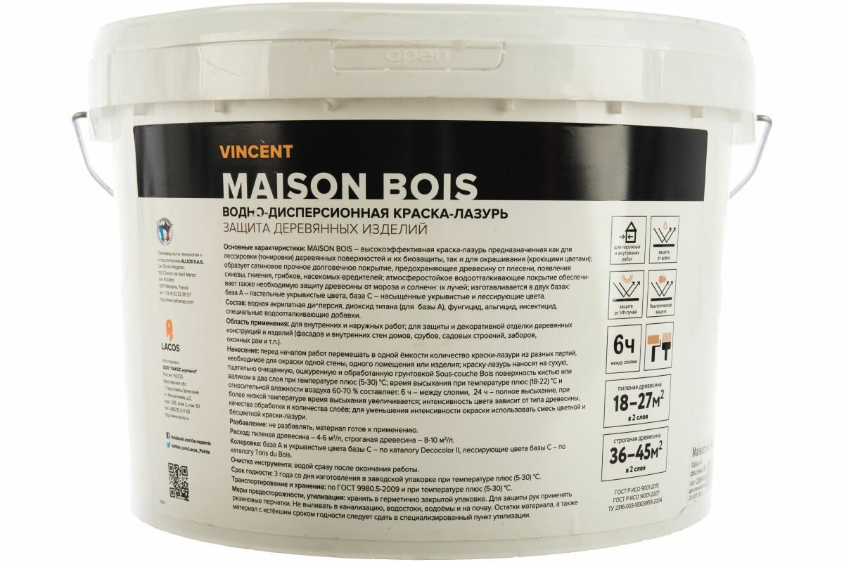 Краска Vincent Конформат Base а 9л дер