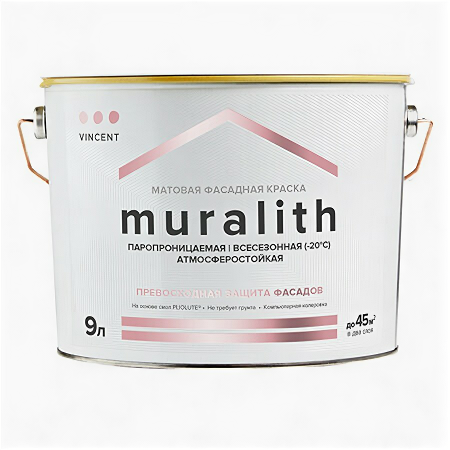 Высокопрочная атмосферостойкая матовая краска для наружных работ на основе смол Pliolite®. (Частицы смол Pliolite® имеют очень маленький размер и поэтому глубоко проникают в субстрат, “прикрепляя” пленку краски к стене. Краски на основе смол Pliolite® предотвращают опасность отслаивания и потери адгезии, исключая необходимость нанесения грунтовки.) Предназначена для защитной и декоративной окраски бетонных (в том числе неотделанных), асбестоцементных, кирпичных, оштукатуренных, ранее окрашенных оснований фасадов зданий и старых осыпающихся оснований, предварительно обработанных непигментированной грунтовкой. Разработана для обновления современных и старинных фасадов зданий, может применяться при отрицательных температурах до – 20 °С на сухие не промороженные основания. Обладает повышенной устойчивостью к атмосферным воздействиям, обеспечивает высокую адгезию ко всем, даже щелочным основаниям, образует микропористую паро- проницаемую пленку, позволяющую основанию “дышать” и одновременно обеспечивать водонепроницаемость, само- очищается. Срок эксплуатации во всех климатических зонах не менее 10 лет. Рекомендуется для применения в зонах с влажным морским климатом. Расход: 8-10 м2/л