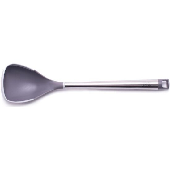 Красивый половник отличается продуманной конструкцией: рукоятка выполнена из нержавеющей стали, чашечка из нейлона с ободком из силикона, гасящего возможное механическое воздействие на поверхность посуды с тефлоновым покрытием. Половник подходит для кастрюль, ведерок мультиварок и хлебопечек, с ее помощью из посуды можно безопасно извлекать соусы, компоты, супы и другие жидкие блюда.