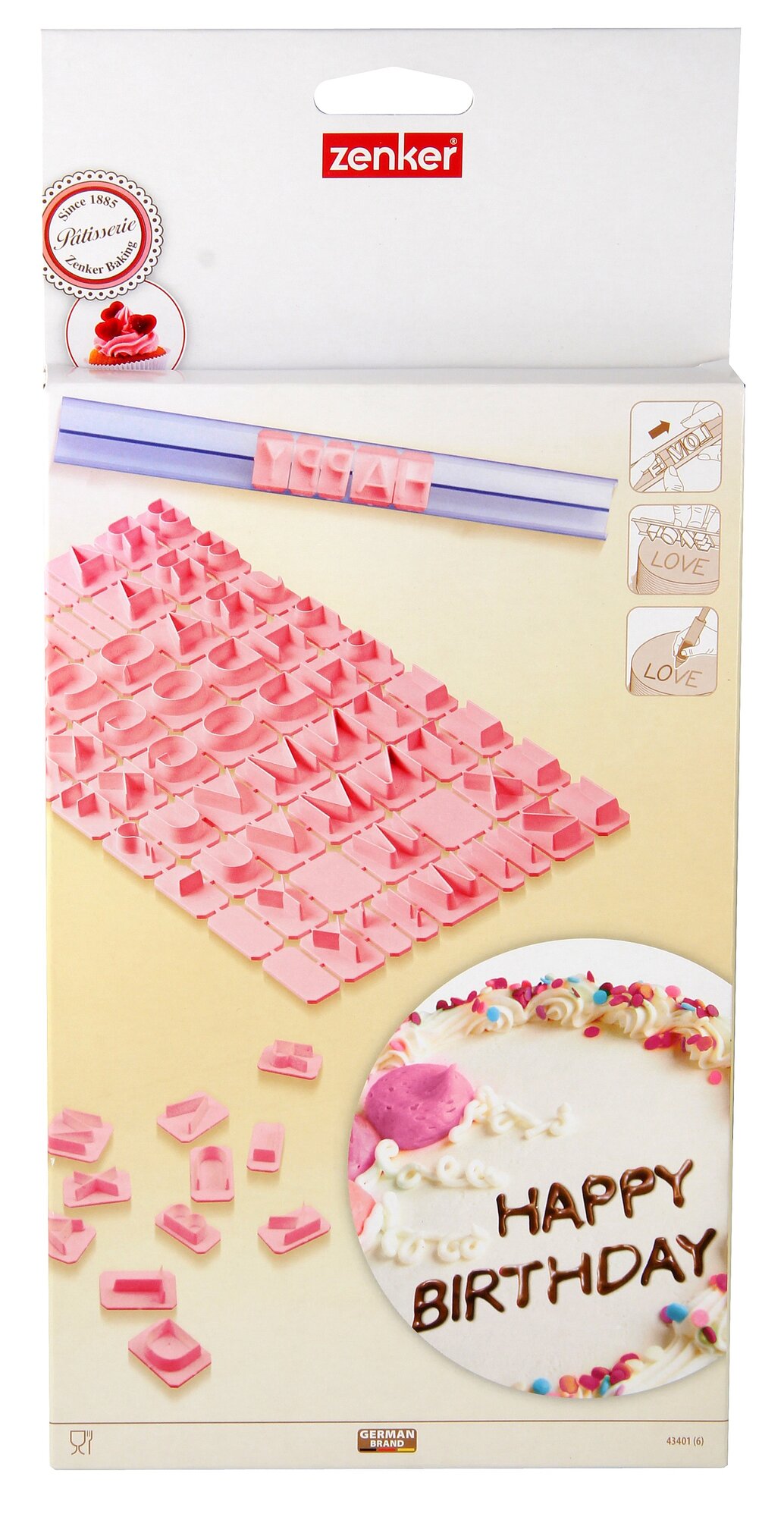 Кулинарный декоратор - набор алфавит формы букв печатные плюс линейка 59 штук розовый Fackelmann 43401