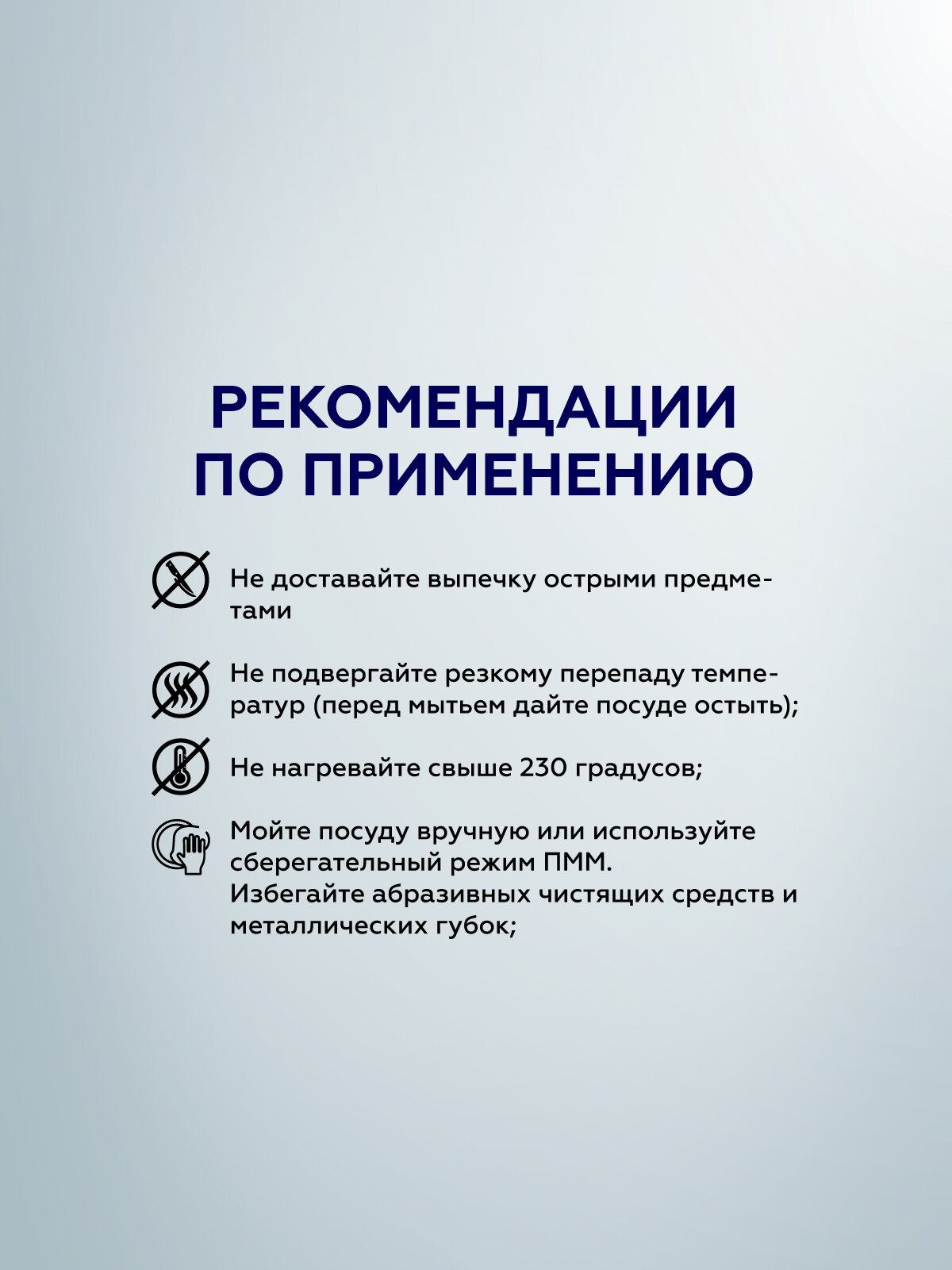 | Совместимость | можно мыть в посудомоечной машине; можно хранить в холодильнике; подходит для духовки |