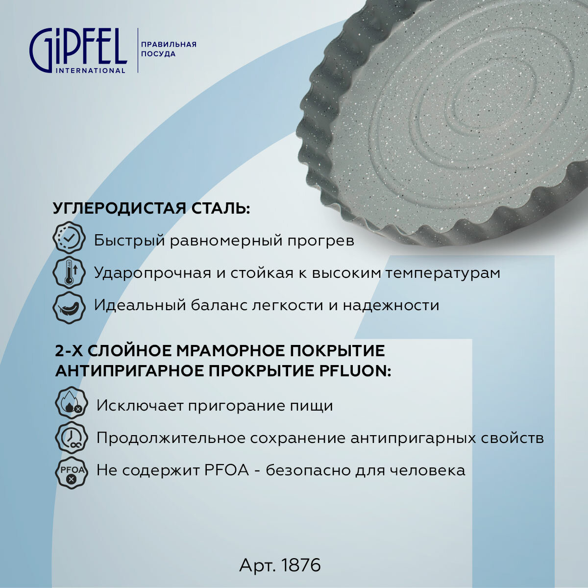1876 GIPFEL Форма для выпечки 28,0x28,0x3,5см круглая с антипригарным мраморным покрытием. Материал: Углеродистая сталь.