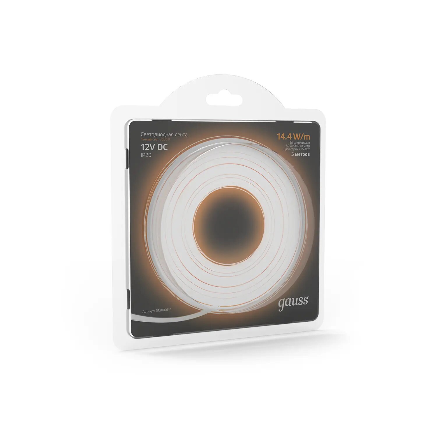 Светодиодная лента EB312000114 мощностью 14,4 Вт – изготавливается с использованием 60 светодиодов на метр, общей протяженностью 5 метров в ролике. Общее питаемое напряжение ленты составляет 12 Вольт. Высокая цветоустойчивость ленты обеспечивает сохранность заявленного цвета в течение всего срока эксплуатации. Мягкий белый цвет свечения ленты максимально приближен к естественному солнечному свету, что гарантирует максимальный комфорт его восприятия. Гибкая светодиодная лента подходит для интерьерной подсветки и рекламы, может идеально повторить контуры любого потолка, также может использоваться для основного освещения помещений. Световой поток 660 лм.