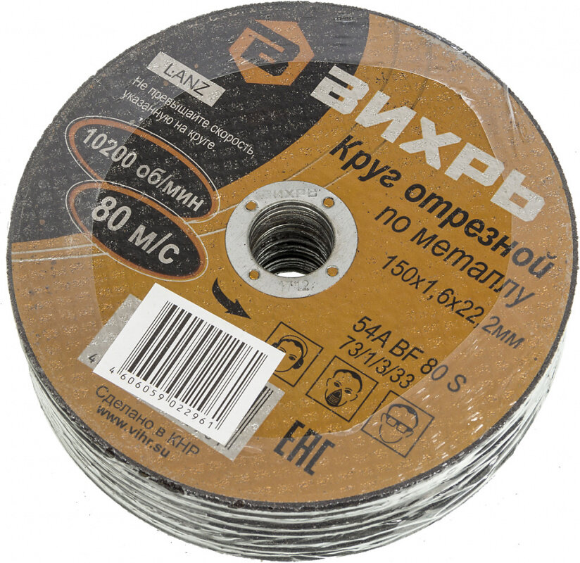 Круг отрезной по металлу Вихрь 150х1,6х22 мм