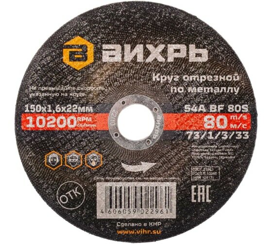 Сервис сравнения цен СкидкаГИД предлагает сравнить цены на товар «Круг отрезной по металлу Вихрь 150х1,6х22 мм»