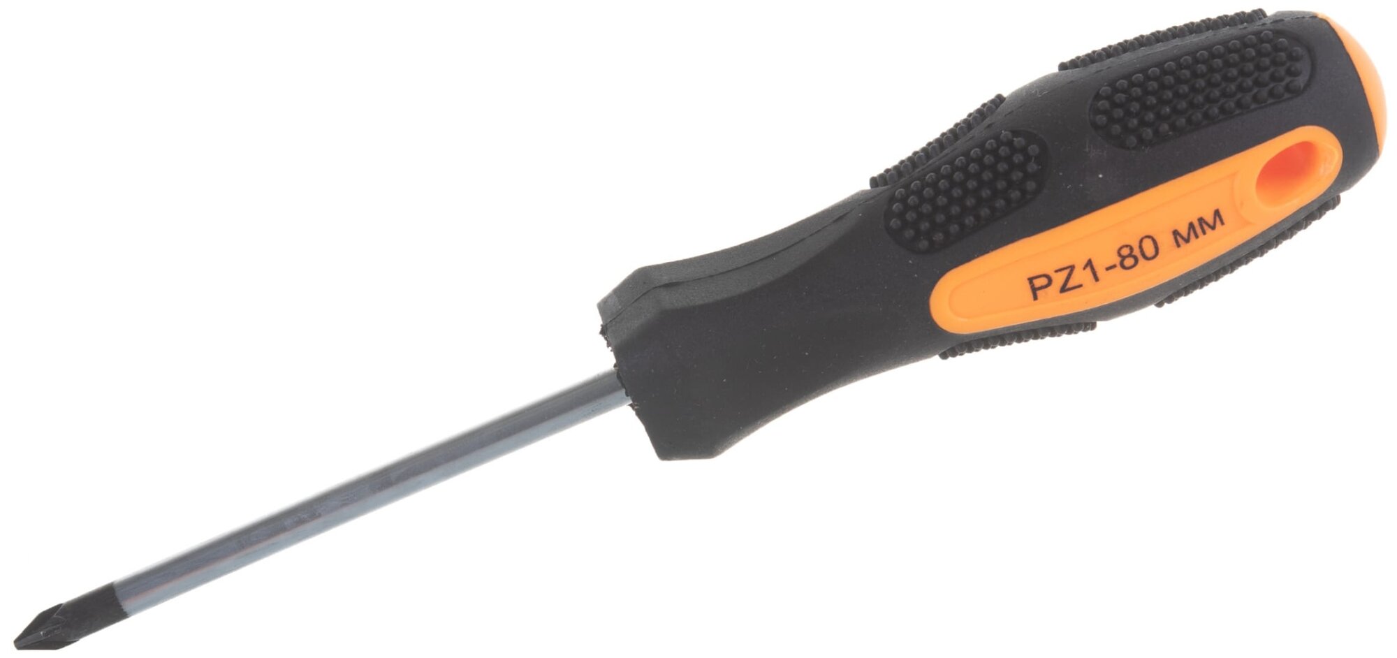 Крестовая отвертка PZ1 80 мм, используется при работе с крепежом, оснащенным дополнительными насечками для лучшей передачи усилий.