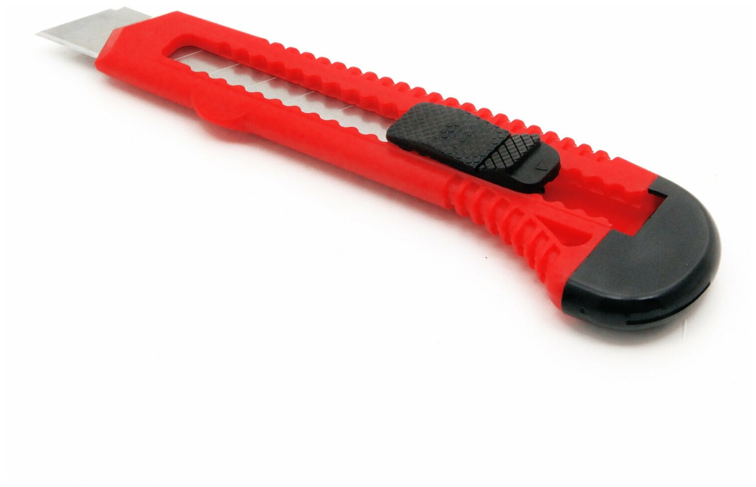 Нож 18мм VIRA пластиковый корпус Push-lock. Предназначен для разрезания бумаги, картона, пластика, ткани. Ширина лезвия – 18 мм. Инструмент предназначен для разрезания бумаги, картона и прочих материалов. Сегментированное лезвие позволяет использовать нож длительное время – при износе заточки достаточно надломить затупившийся сегмент лезвия и перейти к использованию следующего. Система фиксации лезвия Push-lock позволяет одним движением отрегулировать длину лезвия и закрепить его положение. Корпус выполнен из усиленного пластика.