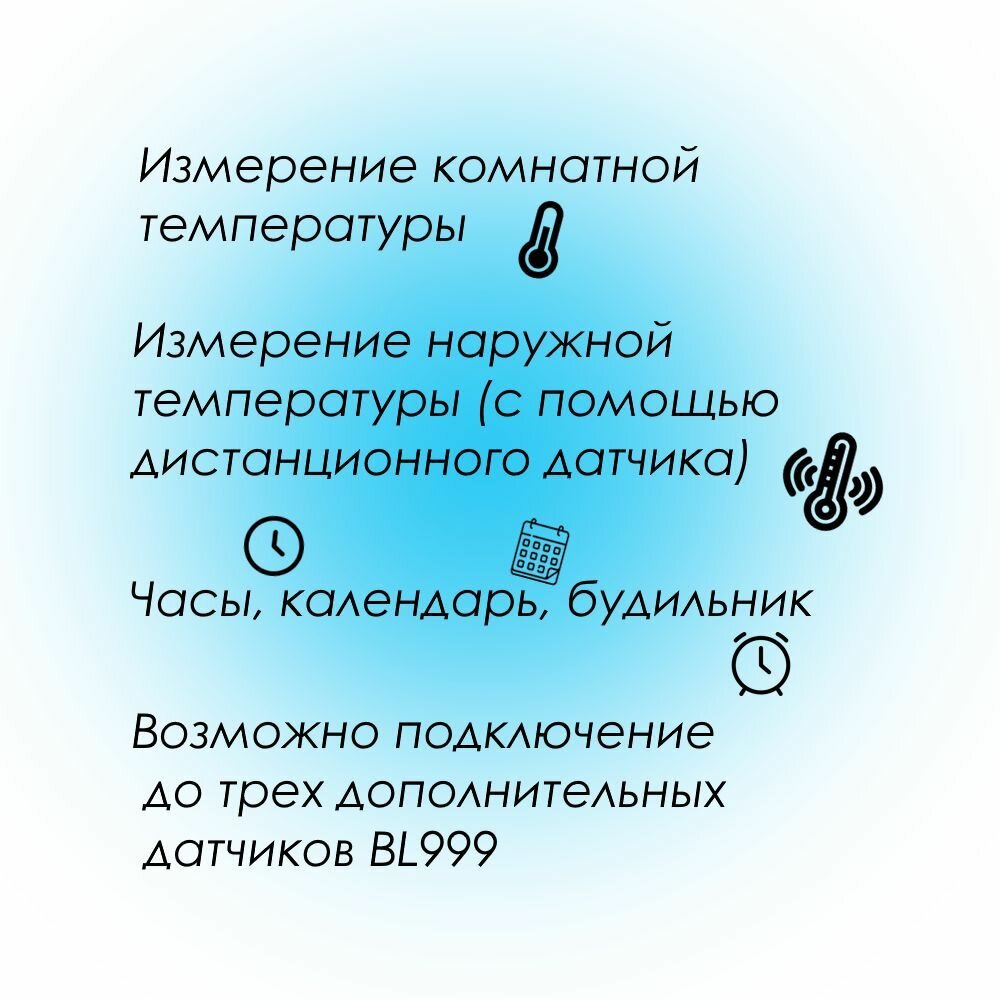| Измерение температуры внутри помещения | есть (-9.9°C- +50°C, память мин./макс. температур, выбор ед. измерения) |