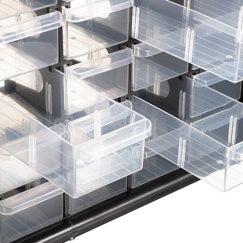Под маленькие детали то что нужно, установил в гараже, он у меня отапливаемый, поэтому брал пластиковые, постоянно поддерживается комнатная температура, для гвоздей, шурупов, кнопок и так далее очень не лишняя вещица, чтобы все не валялось где не попадя, лучше один раз прикупить такой довольно удобный отсек, с выдвижными отделами для мелких предметов.