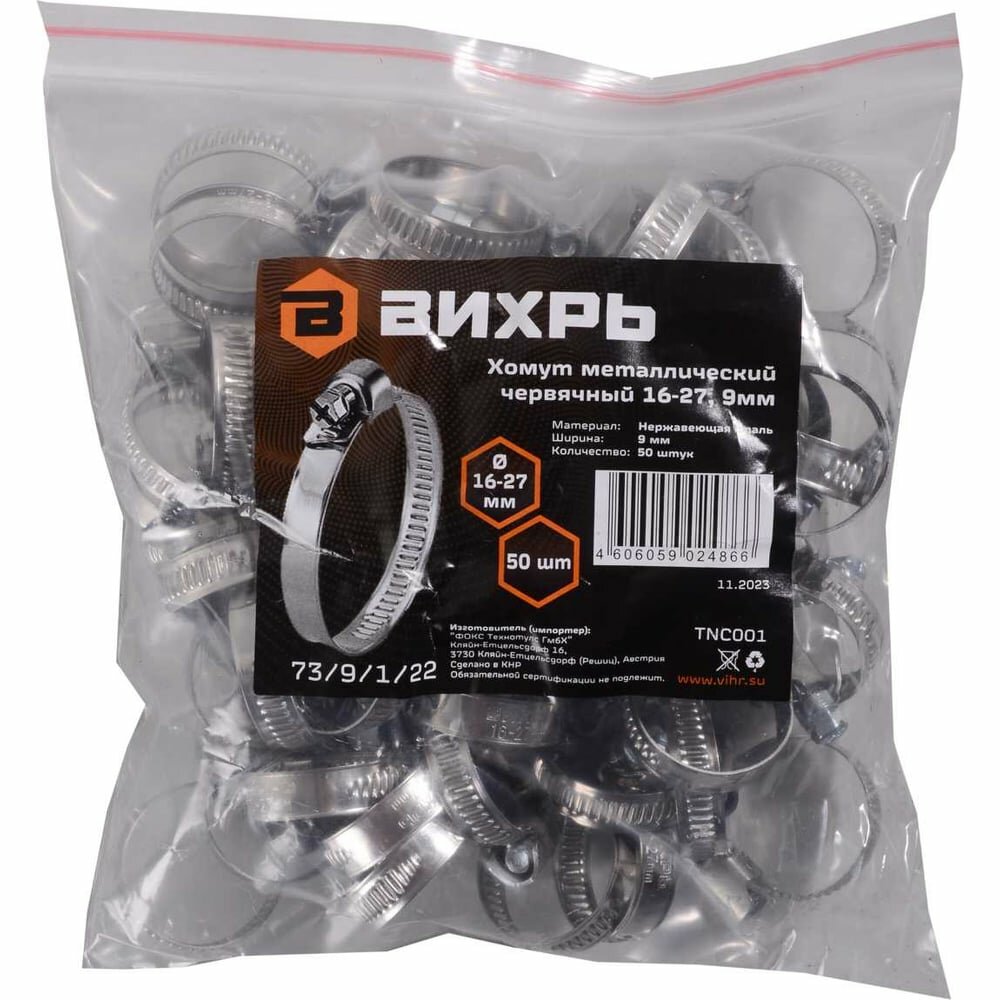 Хомут металлический червячный Вихрь 16-27, 9мм 50 шт