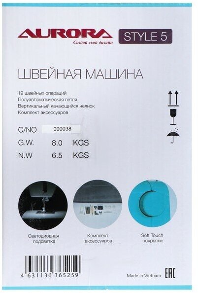Здравствуйте! Хочу поделиться своим впечатлением о данной модели. Заказал в качестве подарка своей знакомой, которая на постоянной основе занимается шитьём. Вроде и не дорого и ей пригодиться. Но она сразу оценила Aurora STYLE 5 на отлично. Хочу порекомендовать всем своим знакомым данную модель. Вам тоже рекомендую т.к. качество и удобство превзошли ожидания, тем более с учётом такой стоимости. Приобретайте, не пожалеете.
