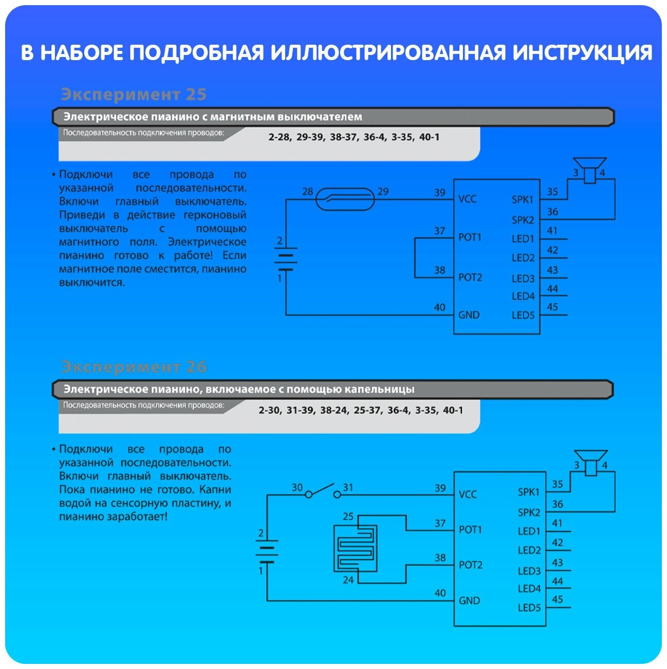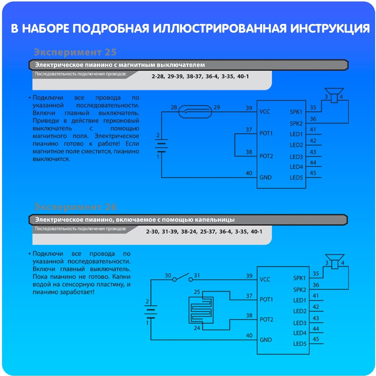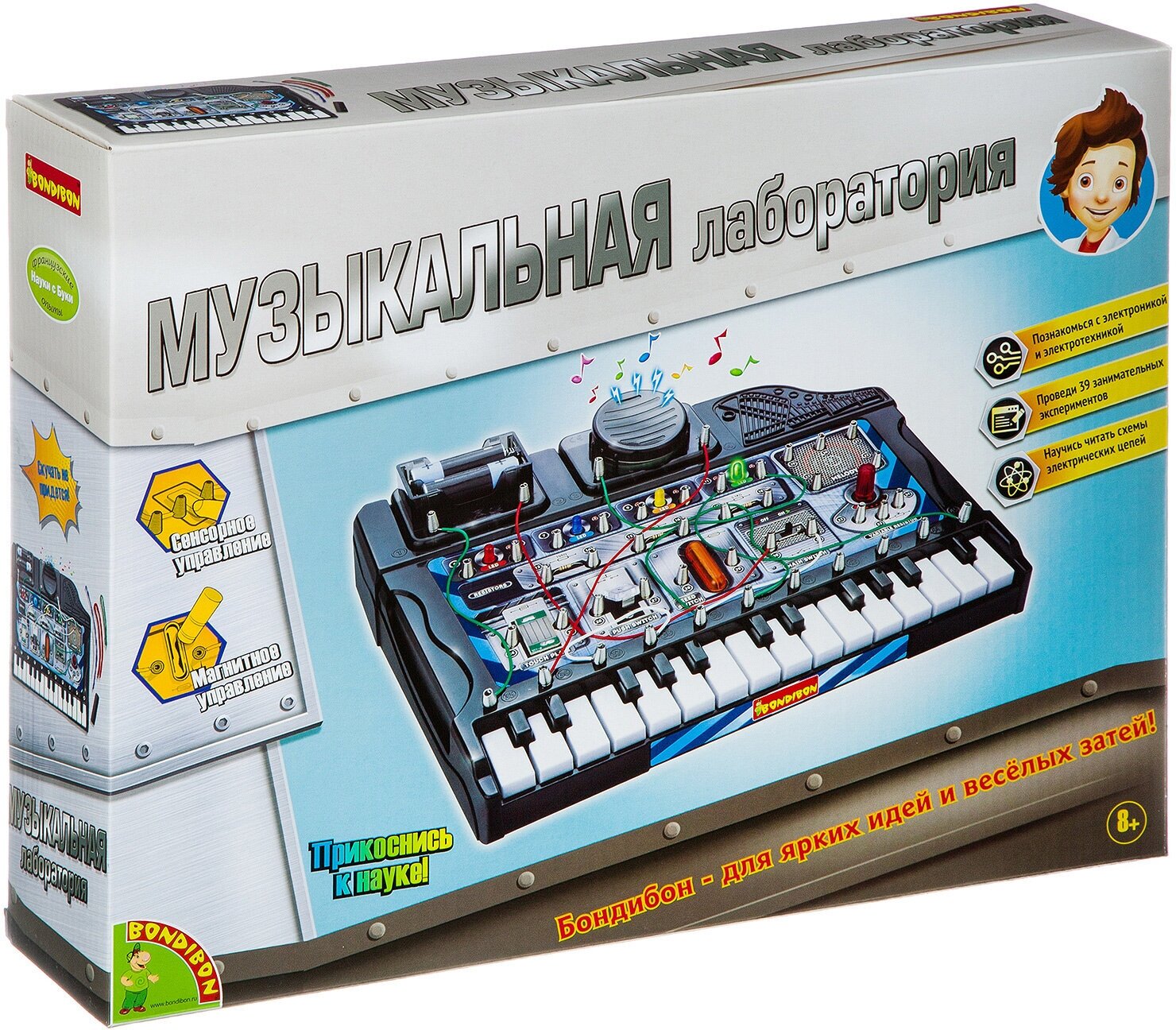 Ребёнок любит музыку? Порадуйте малыша набором "Музыкальная лаборатория" из серии "Французские опыты Науки с Буки". С ним ребёнок проведёт 39 увлекательных опытов, узнает, откуда в синтезаторе берётся звук, что такое электрическая цепь и как работает динамик. Дополнительно понадобятся 2 батарейки АА (не входят в комплект).