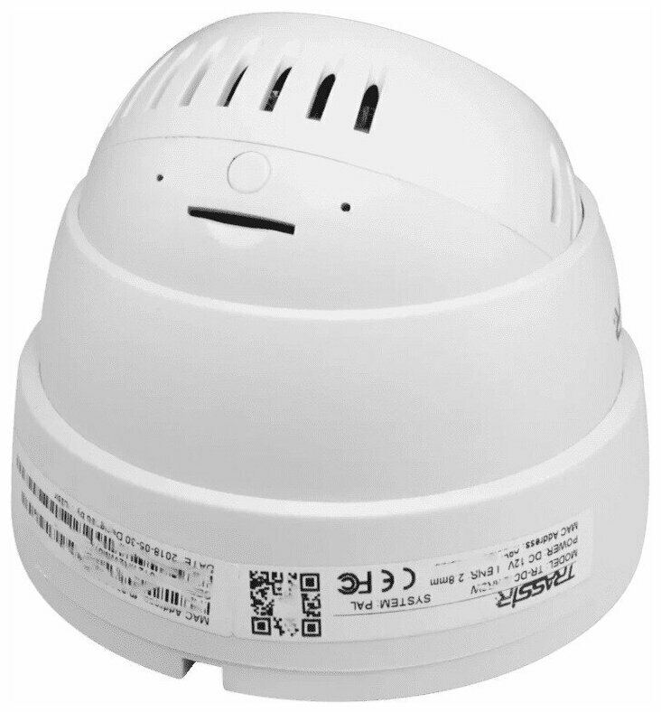 Сетевая 2 Мп (1920?1080) камера TRASSIR (2.8 мм) полностью независима от структурированной кабельной системы (СТС): оснащена модулем Wi-Fi для альтернативной передачи данных и слотом для microSD емкостью до 128 Гбайт — локальная запись предохранит архив от потери при обрыве связи.
