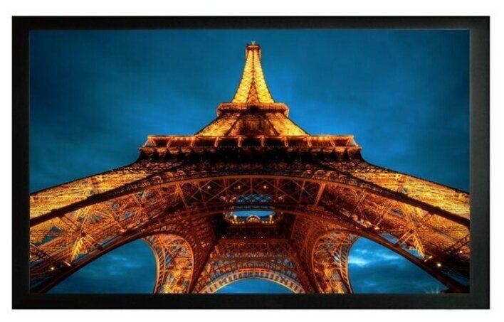 это натяжной экран на фиксированной раме, что обеспечивает идеально ровную поверхность для получения превосходной картинки при просмотре видео. Идеально подходит для короткофокусных проекторов.