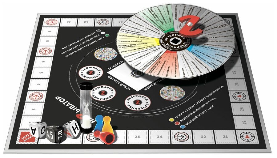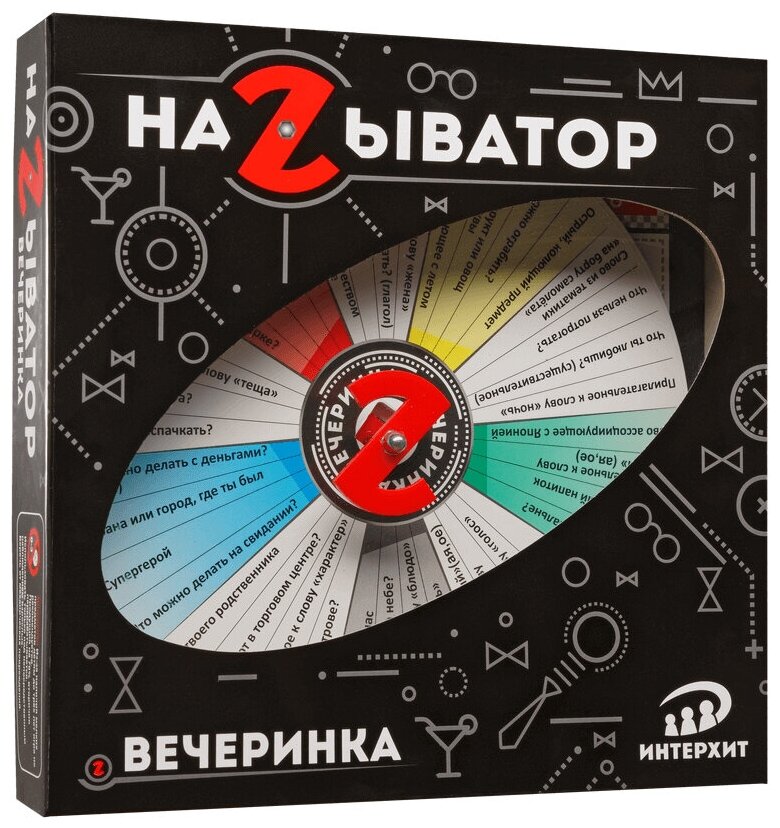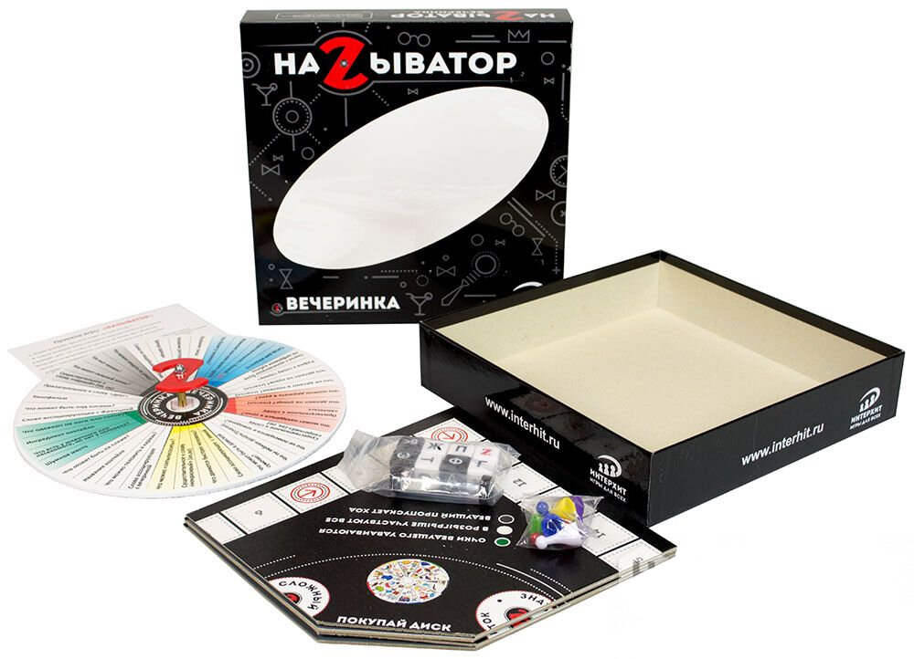 Любишь тусовки, часто отрываешься с друзьями и сечёшь в том, как нужно отдыхать? «Называтор – Вечеринка» придуман специально для тебя: 80 прикольных и позитивных тем, которые помогут сделать чумовую party! Действительно новые настолки появляются редко… и сейчас как раз такой момент! «Называтор» от ИнтерХит – уникальная серия игр: весёлая, динамичная и оригинальная. Сразись с друзьями, сделай ставку на фантазию и интеллект, не забудь о везении и приди на финиш «Называтора» первым! Всё очень просто: фиксируете диск с механизмом на игровом поле, ставите фишки на старт, желаете друг другу удачи и вращаете диск «Называтора». Когда диск остановится, стрелка укажет на одну из тем (всего их 80, по 40 на каждой стороне диска) – например, «Что можно увидеть на концерте?». Теперь бросаем кубики: выпадет 7 букв и цифра. Твоя задача: быстро придумать слово, которое соответствует тематике и начинается с одной из выпавших букв. Придумал, назвал, забрал кубик себе.