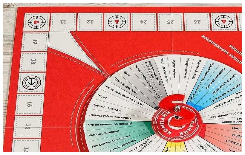 | Комплектация | Игровое поле, диск, механизм вращения, кубики, песочные часы, фишки, инструкция с правилами |