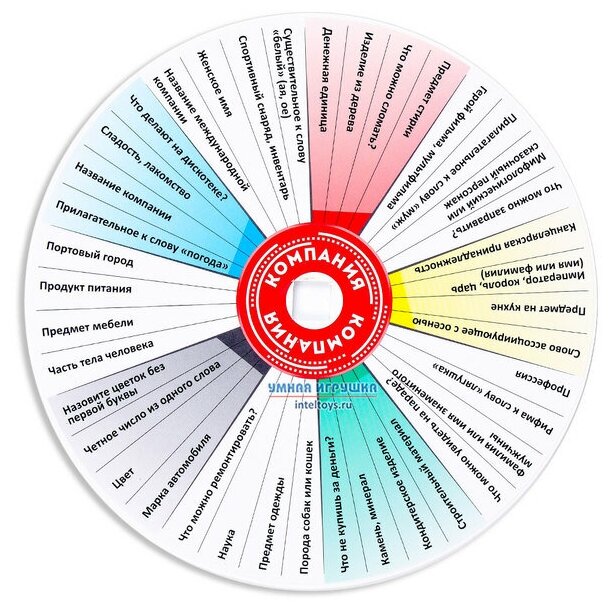 У вас подобралась большая компания, и у всех разные увлечения? Не беда: «Называтор – Компания» предлагает 80 разных тем, в которых разбирается каждый. Играйте и получайте массу удовольствия! Действительно новые настолки появляются редко… и сейчас как раз такой момент! «Называтор» от ИнтерХит – уникальная серия игр: весёлая, динамичная и оригинальная. Сразись с друзьями, сделай ставку на фантазию и интеллект, не забудь о везении и приди на финиш «Называтора» первым! Всё очень просто: фиксируете диск с механизмом на игровом поле, ставите фишки на старт, желаете друг другу удачи и вращаете диск «Называтора». Когда диск остановится, стрелка укажет на одну из тем (всего их 80, по 40 на каждой стороне диска) – например, «Что можно увидеть на концерте?». Теперь бросаем кубики: выпадет 7 букв и цифра. Твоя задача: быстро придумать слово, которое соответствует тематике и начинается с одной из выпавших букв. Придумал, назвал, забрал кубик себе.