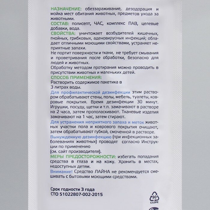 Средство дезинфицирующее Лайна для животных 30 мл Средство для дезинфекции и уборки помещений