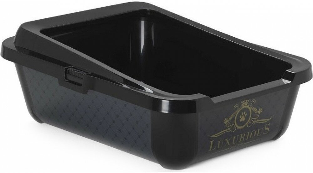 Лоток для кошек Moderna c бортом цвет: черный 51x39x19h см (7013166)