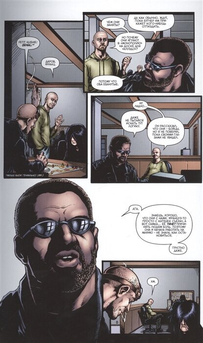 В плане отборной ругани никто не сдерживается - ни сценарист, ни переводчик, поэтому матом здесь все разговаривают без отточий. Присутствуют откровенные сцены, высмеивающие повальную озабоченность современного общества. Сюжеты классные, обилие чёрного цвета в рисунке не делает их безысходно-мрачными, но и позитива не добавляет. Это жесть, но жесть занимательная, смешная (пусть весь юмор болтается ниже пояса и, как бы это сказать…с двух сторон) и со смыслом. Осторожно: ваши взгляды на героев комиксов пострадают самым неприятным образом. Принимать аккуратно, «Пацаны» вызывают сильное привыкание, лично я уже перешёл в режим ожидания следующего тома. Мягкая обложка (под ней выпуски с 7-го по 14-й), шитый блок, 192 страницы, тираж 3000 штук. -