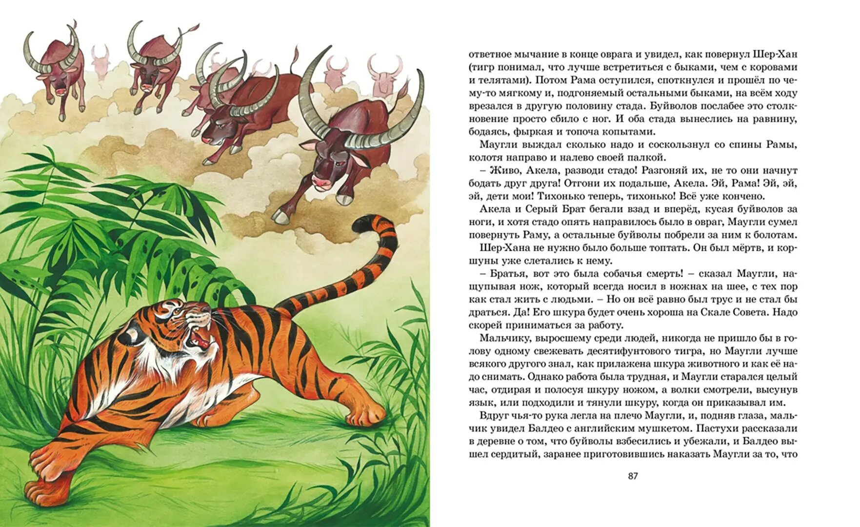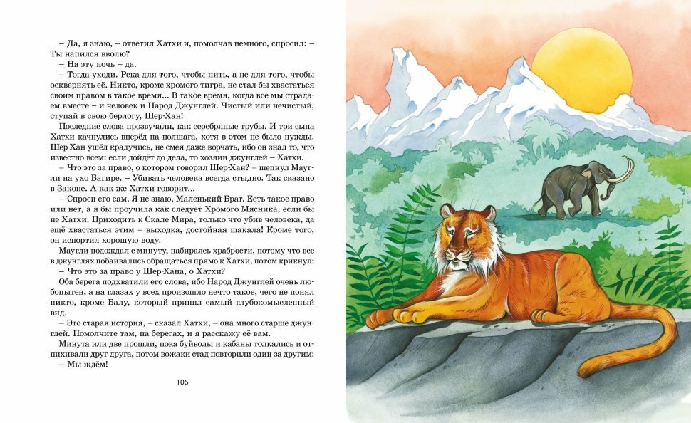 Главным критерием выбора было наличие всех историй в одном издании, потому что продается множество книг либо только с первыми 4 главами (из первой "Книги джунглей "), либо сокращенных. Эта книжка одна из немногих по приемлемой цене, которая полностью удовлетворила всем пожеланиям. Хорошая плотная бумага, довольно много картинок, хоть и неярких, но вполне симпатичных.