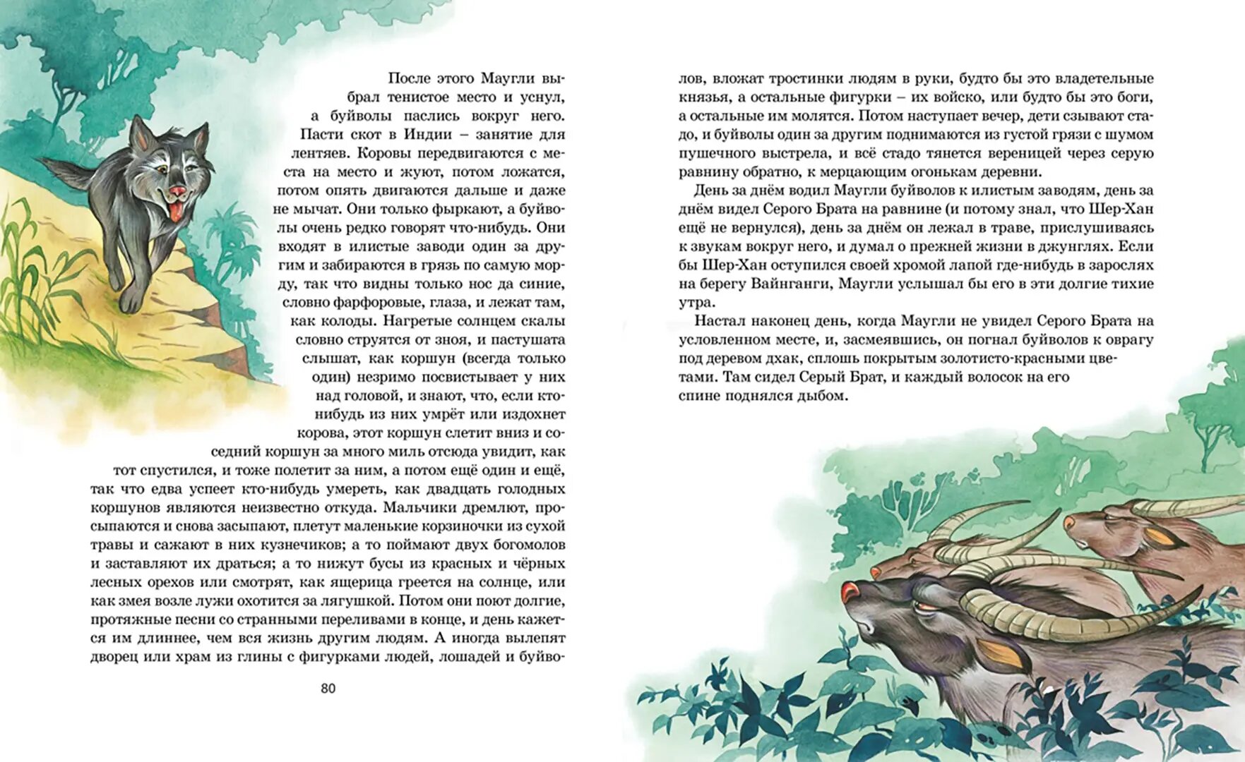 Очень порадовало издание от Махаона) Твердый переплет, плотные листы, очень красивые иллюстрации и, самое главное, полная история Маугли! Культовая история, которая легла в основу множества мультфильмов и фильмов. Книга идеально подойдет для семейного чтения с детишками благодаря детализированным иллюстрациям, которые можно разглядывать пока взрослый будет читать.
