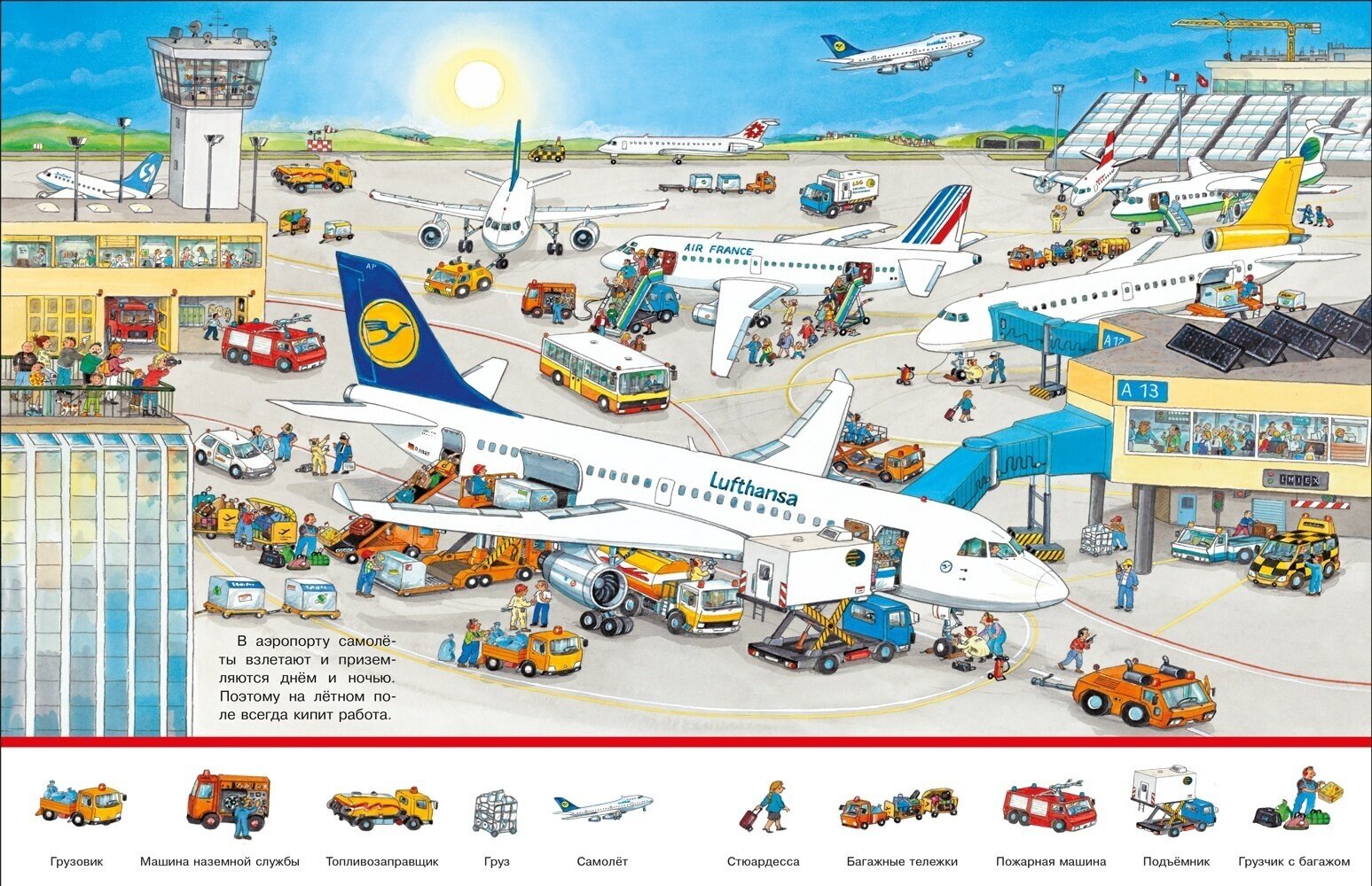 Мир транспорта. В аэропорту (Метцгер Вольфганг (иллюстратор), Гернхойзер Сюзанна); Омега, 2018